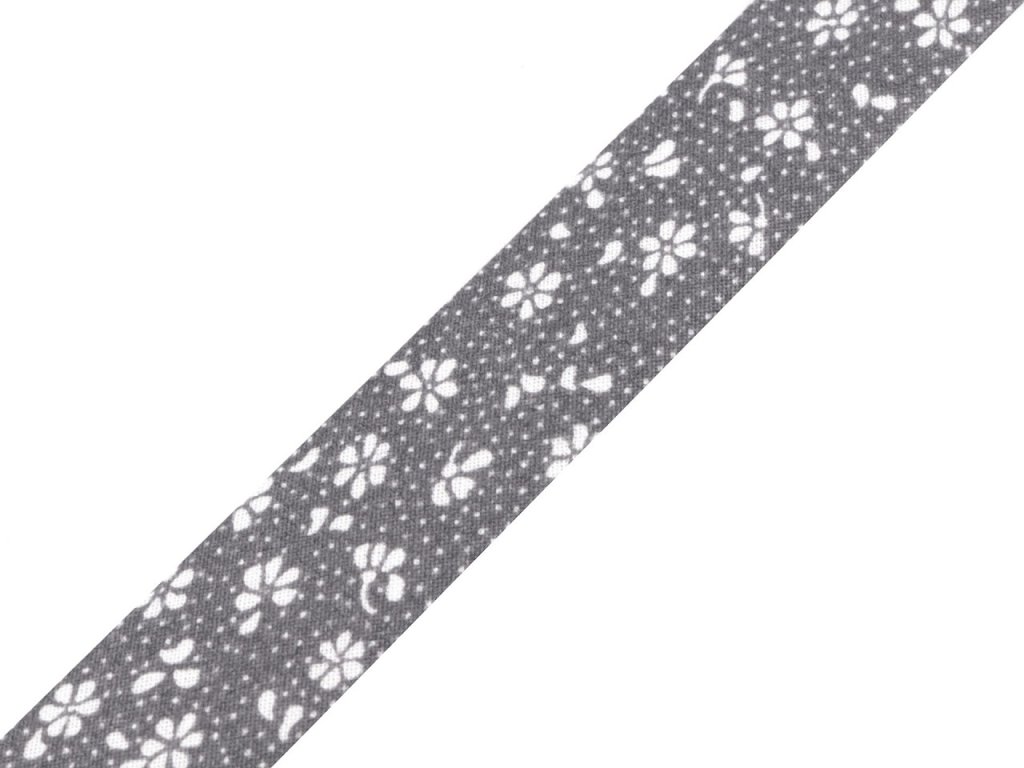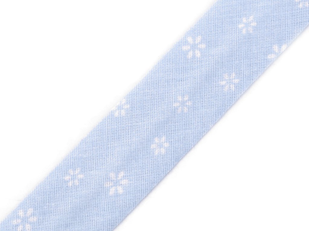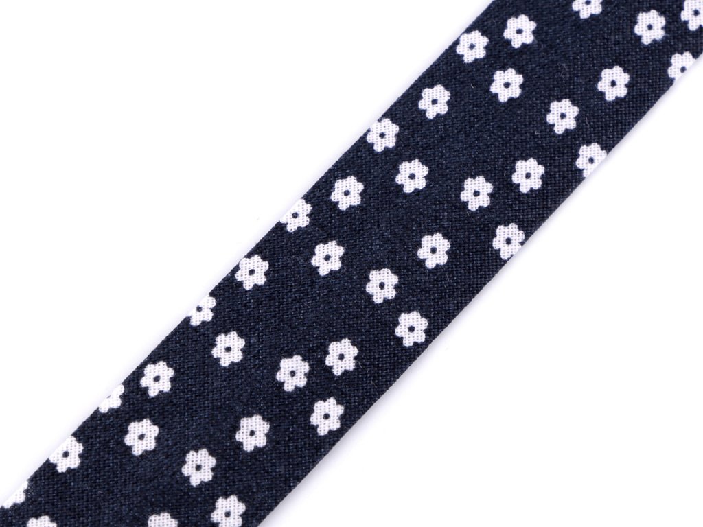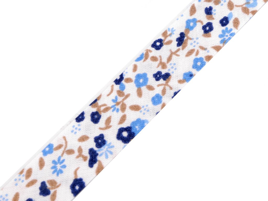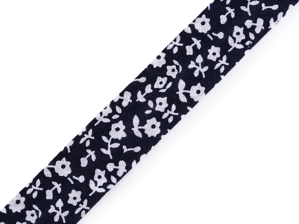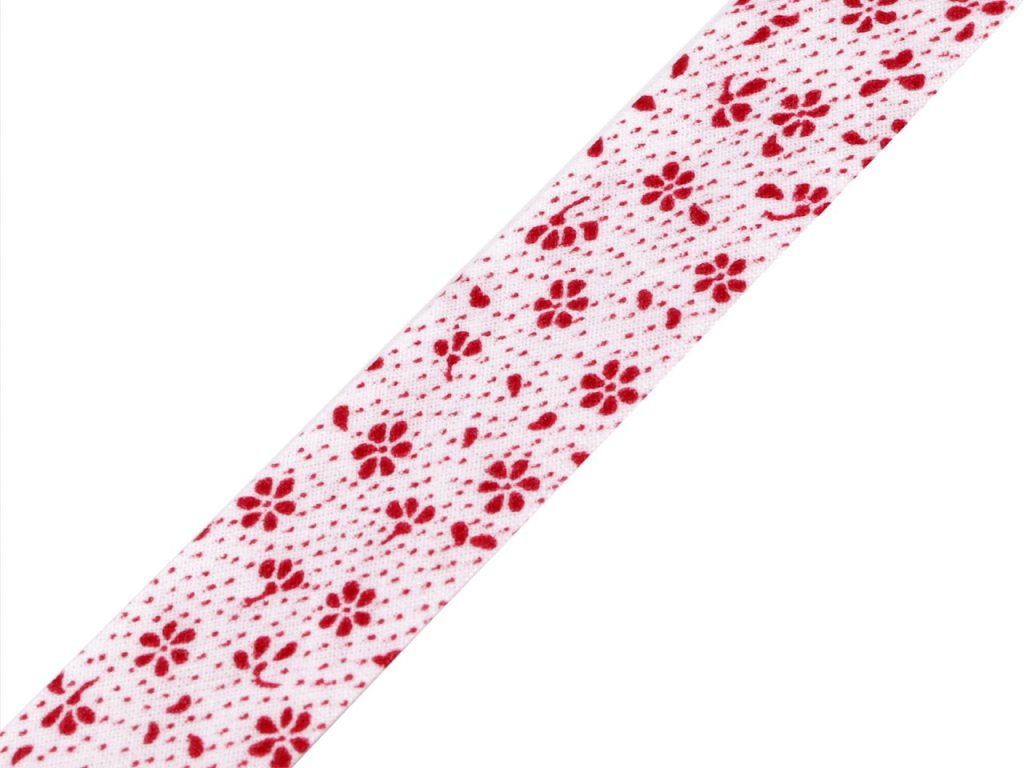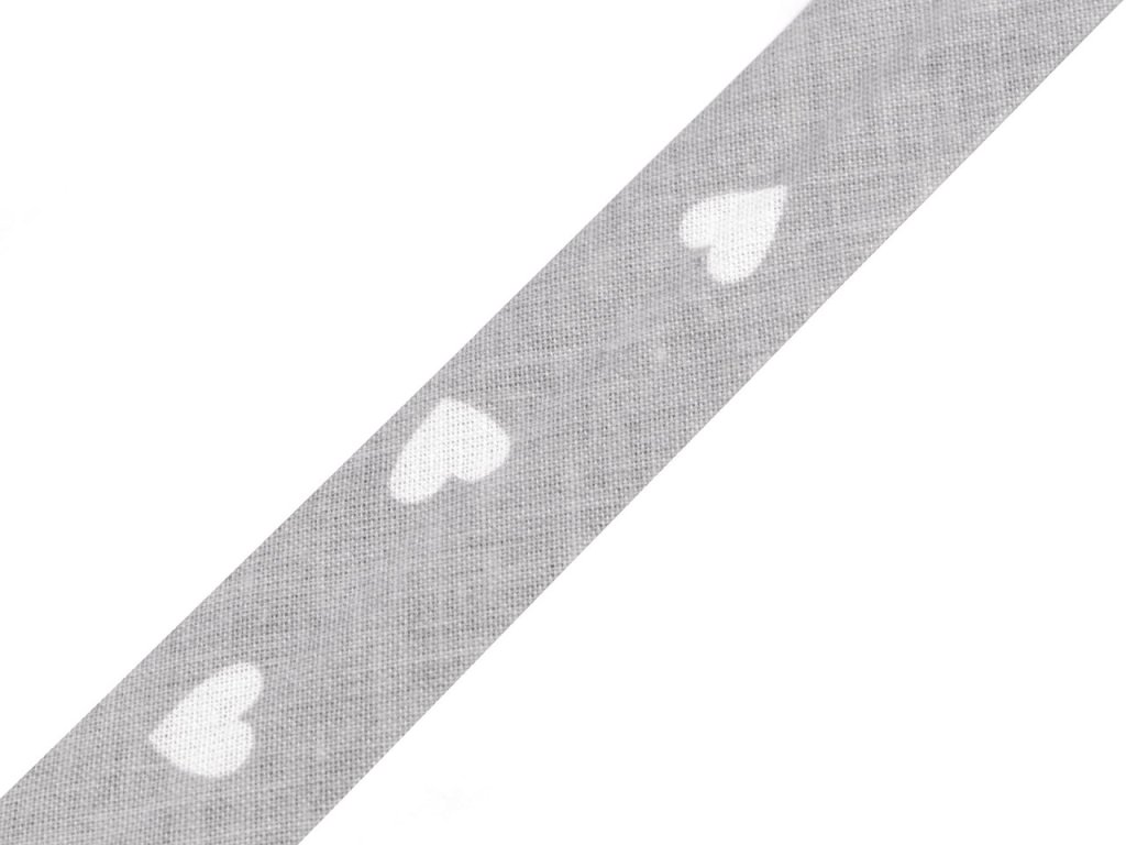 Bavlněný šikmý proužek s různými motivy je pevný a zažehlený. Po našití má poloviční šíři tzn., že tento proužek bude mít po našití šíři 10 mm.