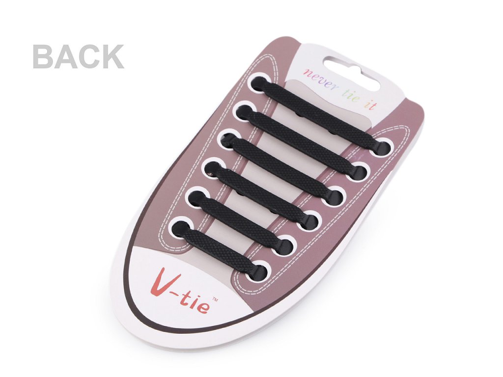 Silikónové šnúrky do topánok si zamilujú predovšetkým deti a tínedžeri. Majú plno výhod, medzi ktoré patrí napríklad, že nepraskajú, nevyťahujú sa, nikde neplandajú, len tak rýchlo sa nezašpinia, neškrtia, sú elastické a hlavne sa zložito nešnurujú . Iba sa prvýkrát zastrčia do otvorov v topánke a môžete ísť. V balení je 6 párov šnúriek v neónových farbách, od najmenšej sa smerom nahor ich dĺžka zväčšuje. Jedna strana má vrúbkovaný vzor, druhá je hladká, záleží na vás, akú stranu si zvolíte, aby bola vidieť.