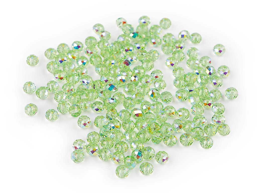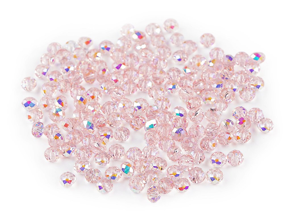 Skleněné broušené korálky ohňovky s AB efektem se vyznačují precizním broušením, které jim dodává jedinečný lesk a jemný vzhled. Jsou transparentní s povrchovou úpravou s AB efektem. Vynikají především svým třpytem. Díky své jednotné velikosti a tvaru jsou ideální pro precizní práci při tvorbě šperků.