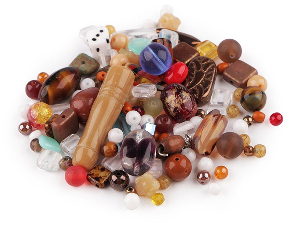 Fotografie jsou ilustrační - v balení se mohou vyskytovat i jiné tvary a velikosti. Ramš je velmi oblíbený pro svoji pestrost. Korálky jsou vyrobeny ze skla. V balení najdete např. kuličky, ohňovky, lístečky, oválky, zvonečky, olivky, jazýčky, srdíčka a jiné druhy, v různých velikostech.
