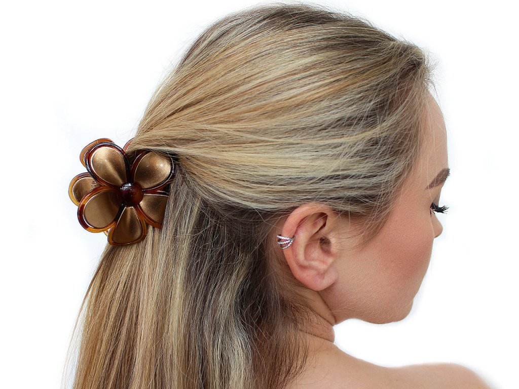 Skřipec do vlasů ve tvaru květu je elegantním doplňkem, který dodá vašemu účesu romantický vzhled. Na první pohled zaujme svým zajímavým zpracováním a povrchem. Vytvoří poutavý účes během chvilky. Ocení jej dívky a ženy, které nemají rády gumičky. Drží přesně na místě díky svému silnému stisku a dlouhých zubů.