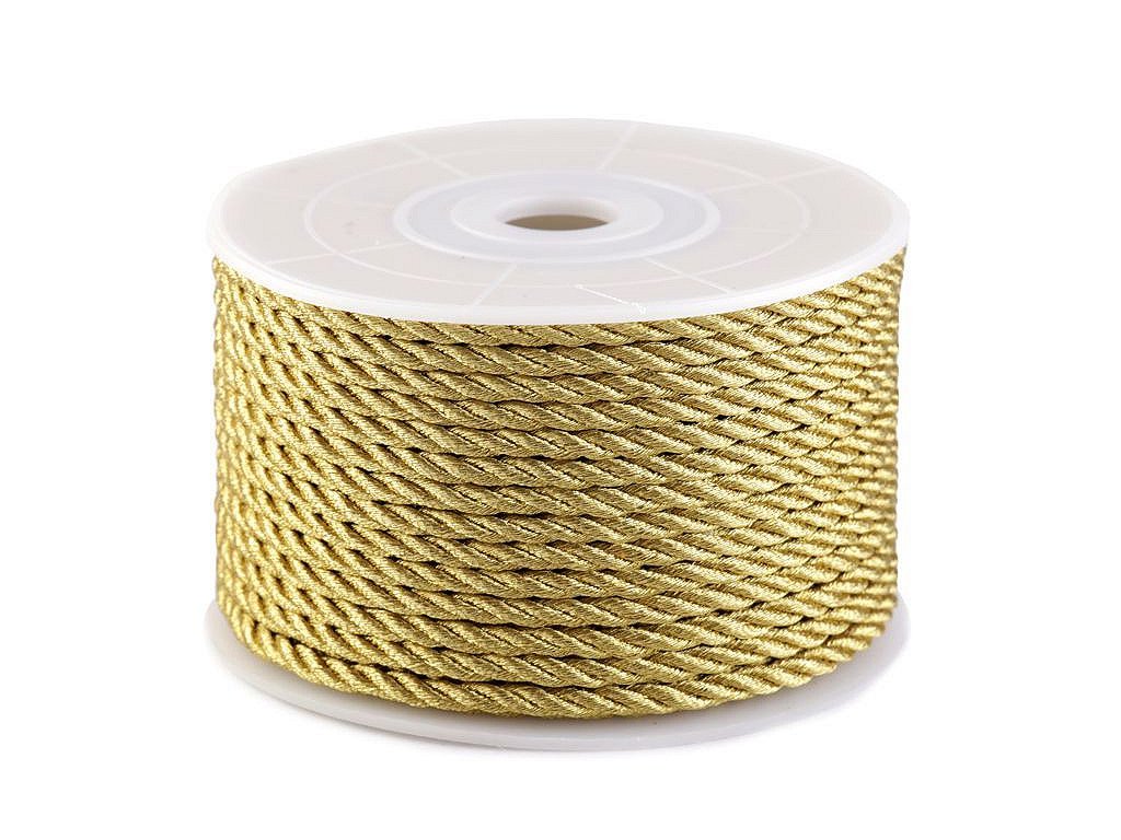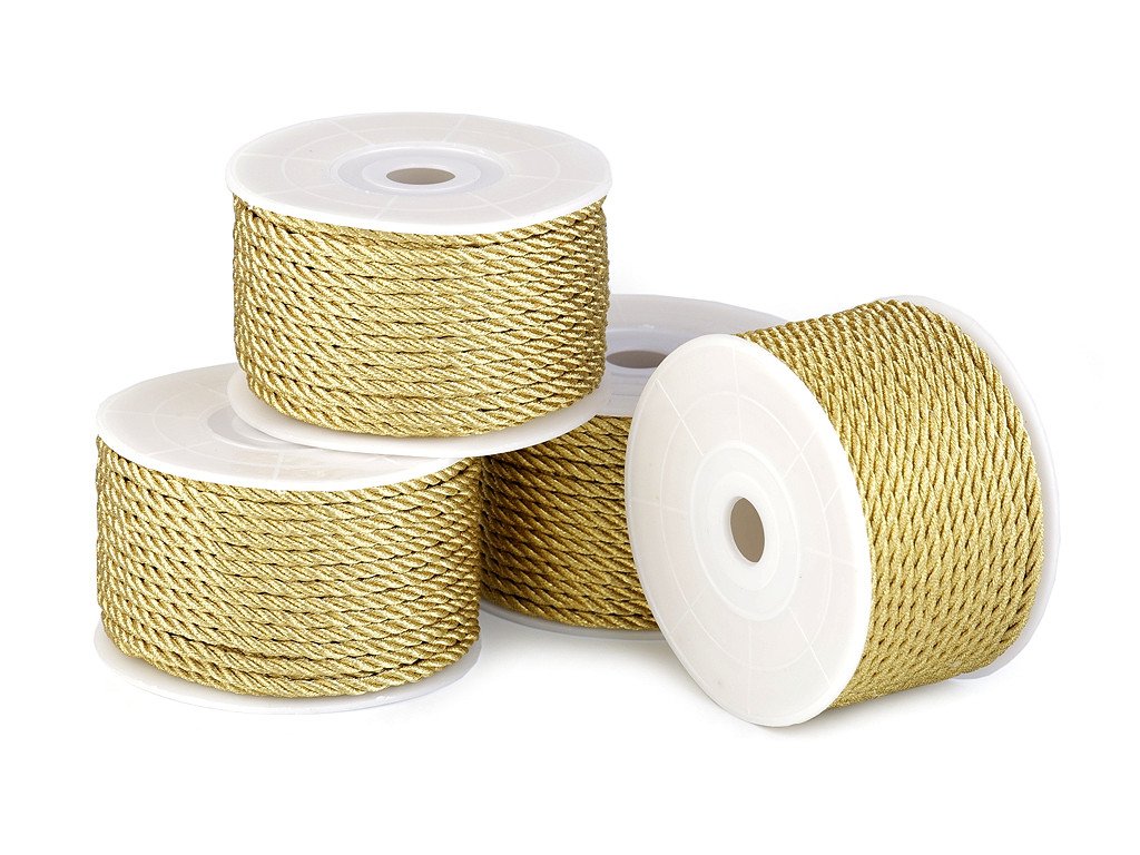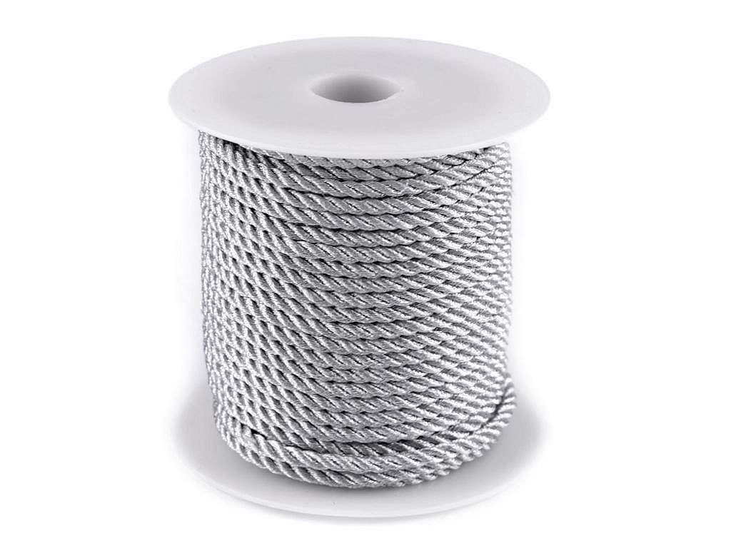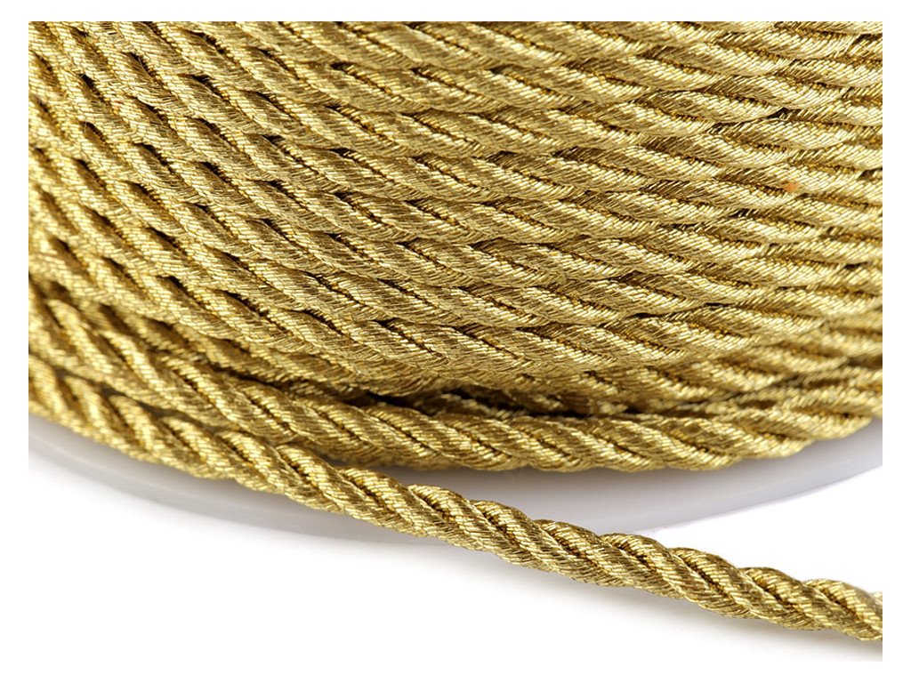Krútená šnúra pôsobí luxusne vďaka trblietavému lurexu. Jednotlivé povrázky majú bavlnené jadro opletené polyesterom a lurexom, ktorý spôsobuje žiarivý ligot. Použitie: Šnúra nájde svoje využitie v textilnom priemysle, v čalúníctve a pod. Je vhodná aj na dekoračné účely, kde vynikne jej trblietavý vzhľad.