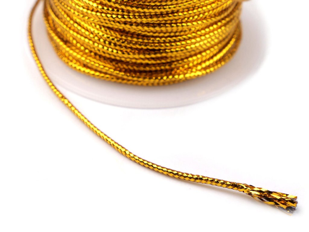 Kulatá šňůrka s lurexem se poutavě třpytí a působí luxusně. Je pevná, není pružná.