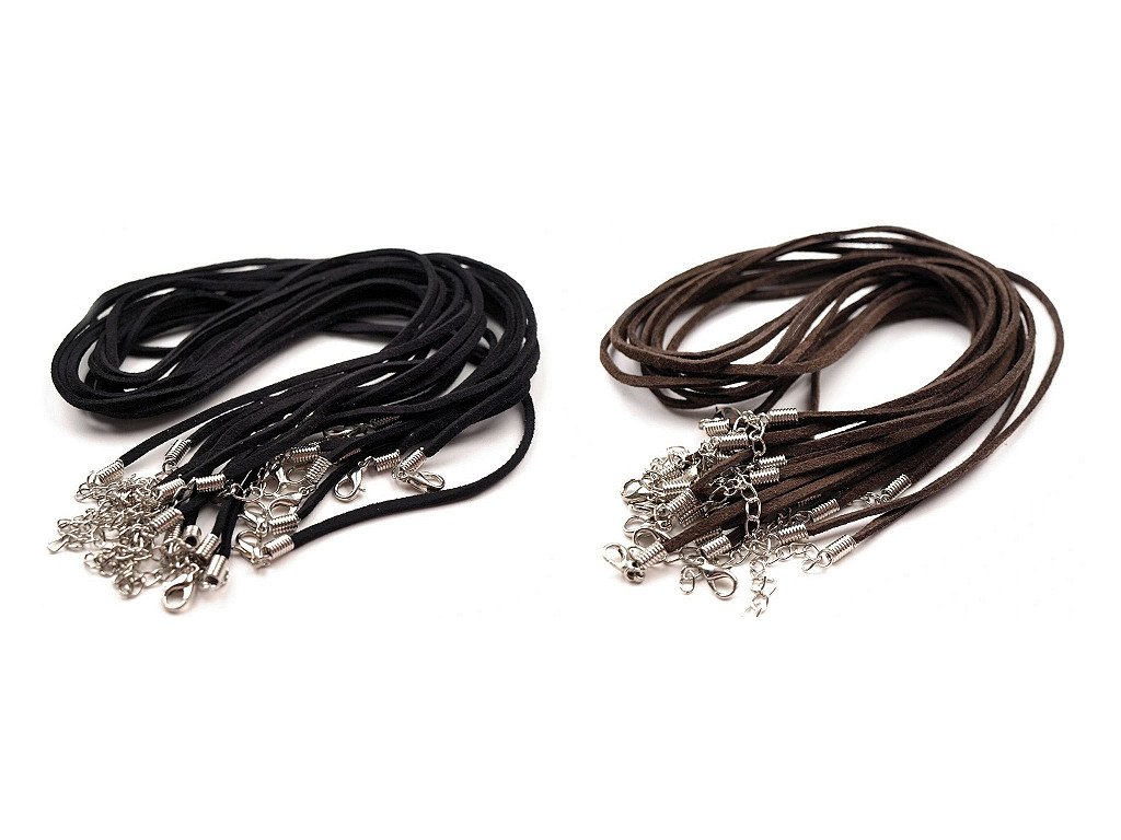 Šňůrka určená k zavěšení přívěsků. V případě, že přívěsek nebude možno díky koncovce navléci, tak lze kleštěmi pružinovou koncovku rozevřít, navléci přívěsek a opět koncovku uzavřít.U černých šňůrek je potřeba zamáčknout kleštičkami konce pružinek, šňůrky se lehce vyvlékají.