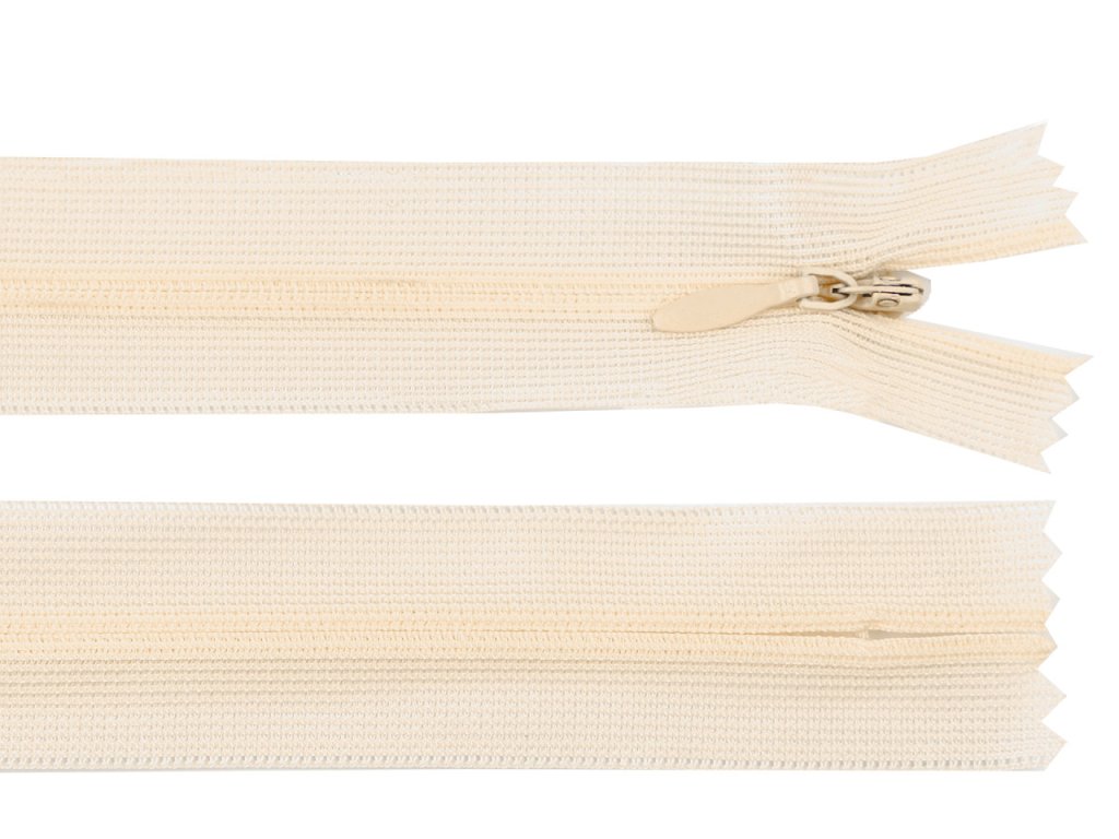 Spirálový zip je po našití prakticky neviditelný, protože má zakrytou spirálu. Je nedělitelný.