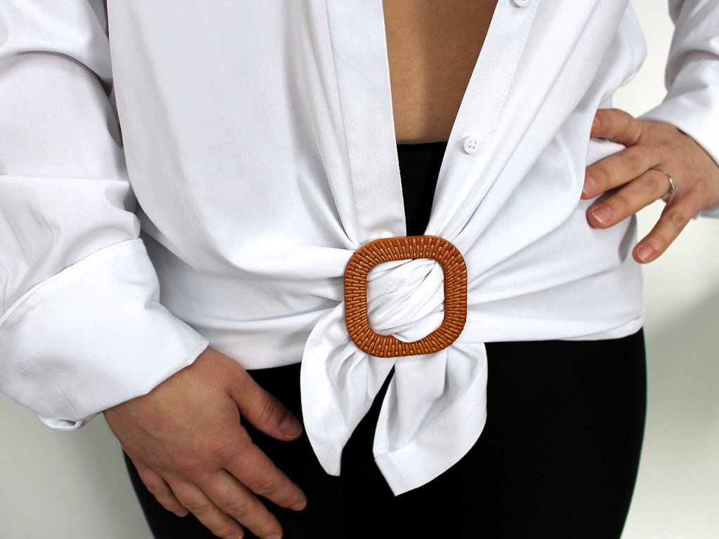 Opasková spona svým designem imituje propletený ratan. Je vhodná na výrobu opasků k šatům, halenkám, tunikám apod. Zajímavě vynikne také jako ozdobný prvek oversized košil, halenek, tašek a kabelek, obzvlášť letních pletených či drhaných.