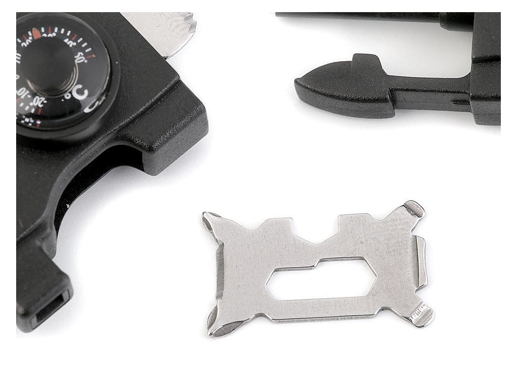 Plastový trojzubec má multifunkčné využitie. Nie je to obyčajná spona, ale má v sebe zabudovanú píšťalku, kompas, nôž a kresadlo. Trojzubec je vhodný na výrobu náramkov, tašiek i opaskov.