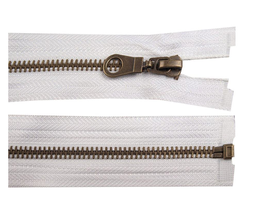 Kvalitní staromosazný zip je velmi pevný a vyrobený z materiálu, který při styku s vodou nereziví. Zipy jsou vhodné pro těžší textilní výrobky, hlavně pro bundy, kabáty, jeans programy, kabelky, apod.