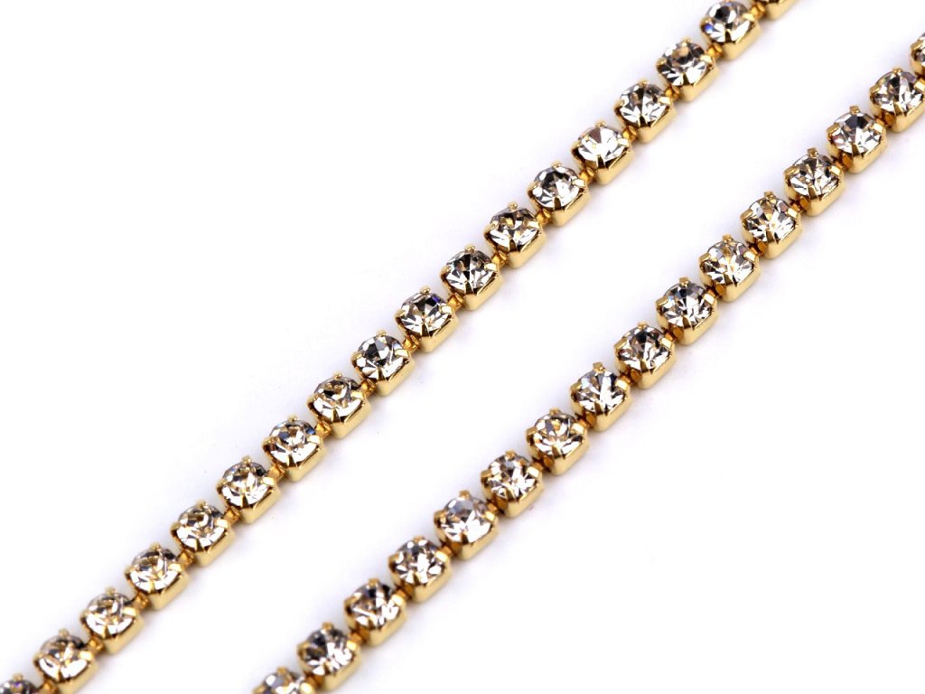 Luxusní bižuterní řetízkovou bortu zdobí třpytivé broušené kamínky vsazené do kovových kotlíků.