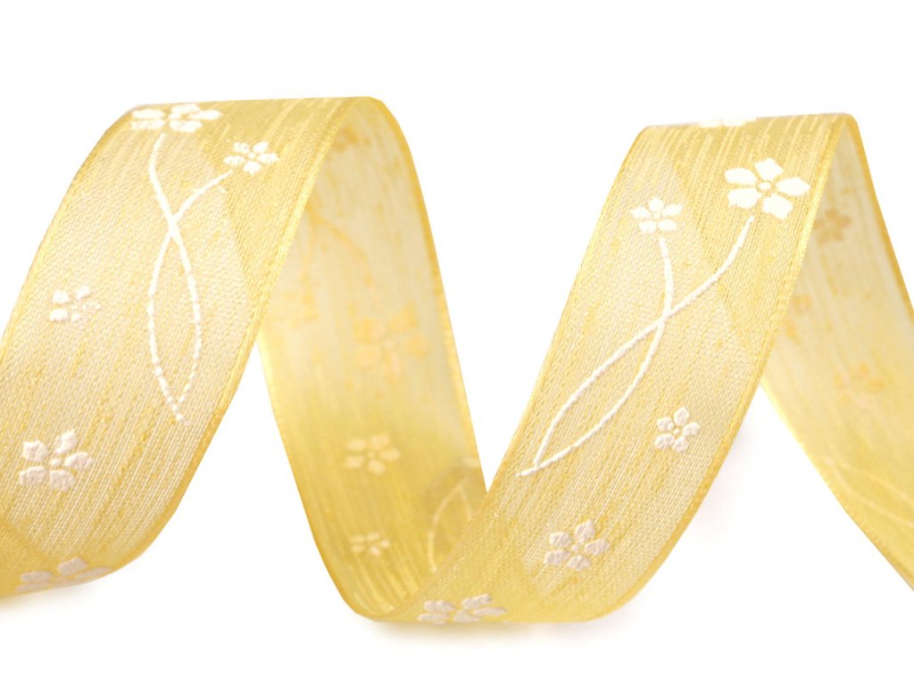Použití: Stuhu můžete využít na výrobu různých dekorací. Hodí se na aranžování jarních věnců, velikonočních dekorací, slavnostních tabulí apod. Můžete s ní i elegantně zabalit dárky.