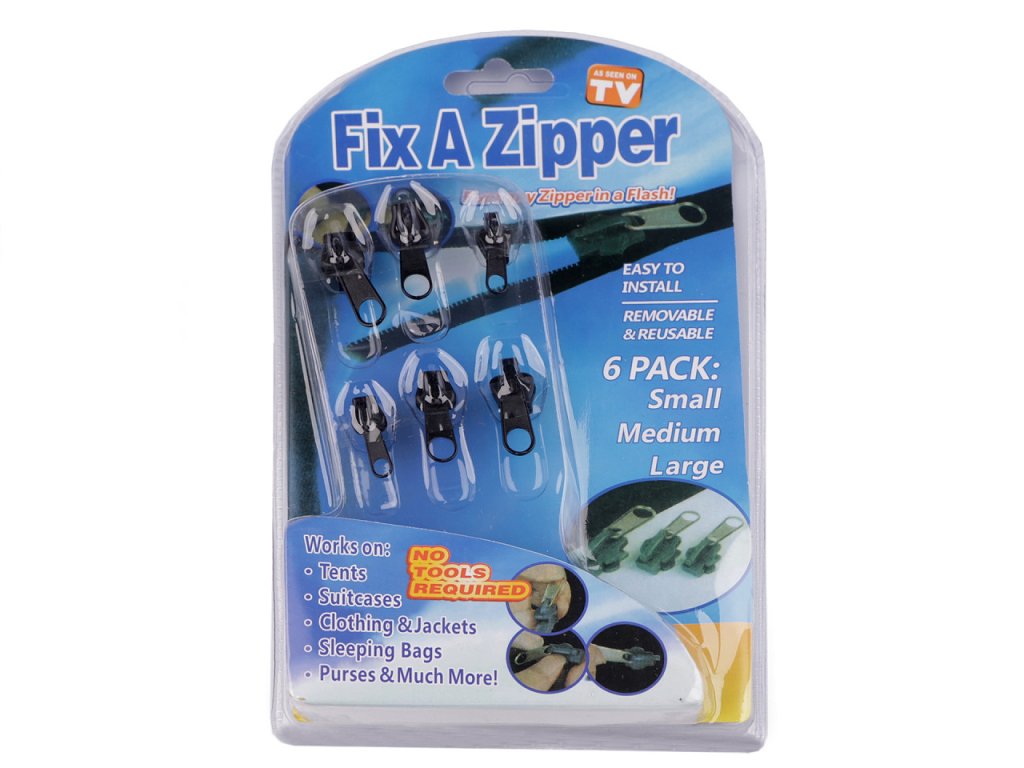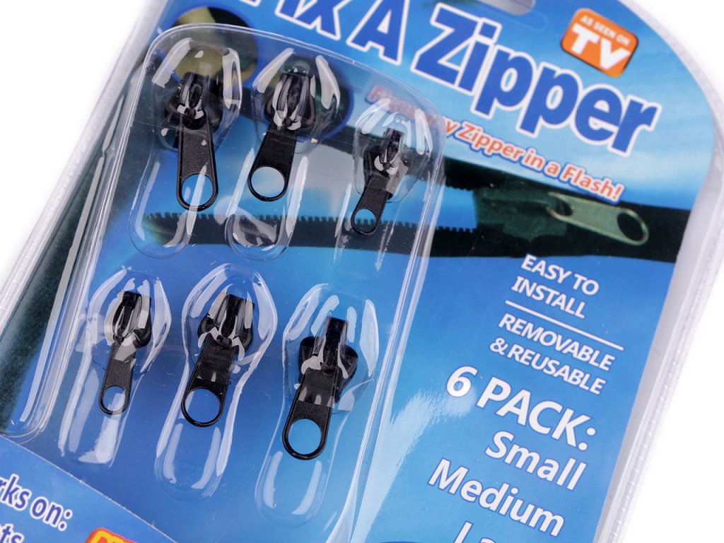 Sada náhradních jezdců slouží k rychlé dočasné opravě zipu. Je vhodná na kostěné, kovové a spirálové zipy. Náhradního jezdce rozevřete, nasadíte, zacvaknete a pomalu zapínáte. Provizorně si tak opravíte zip na oblečení či doplňcích.