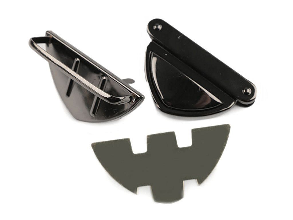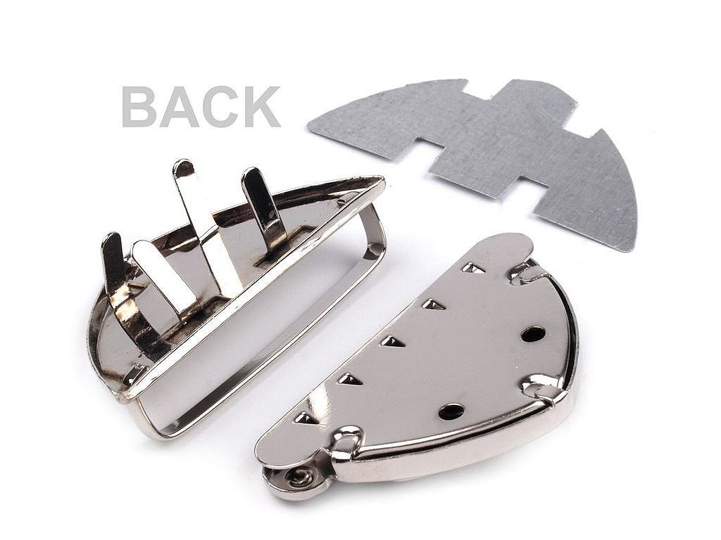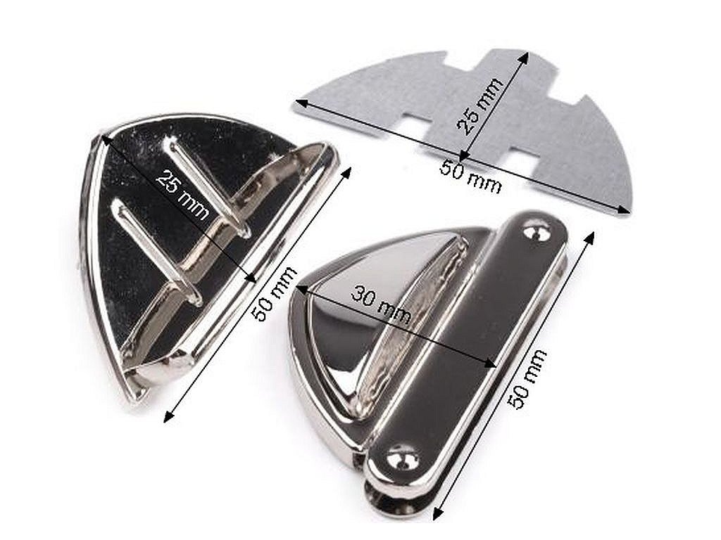 Zapínanie na kabelku či tašku sa skladá z troch dielov. Jeden diel sa pripevní na vnútornú časť kabelky, druhý na vonkajšiu časť kabelky a tretí diel na chlopňu kabelky. Potom už len stačí zasunúť do seba tak, až začujete cvaknutie. Potom až je kabelka bezpečne uzatvorená. Zapínanie je vyrobené z magnetizujúceho kovu. Rozmery viď foto: - vnútorný diel: 25 x 50 mm,- vonkajší diel: 25 x 50 mm,- diel na chlopňu: 30 x 50 mm.Z rubovej strany sa môžu vyskytnúť hrdzavé fliačky. Zapínanie si upevníte tak, že roztvorite čeľuste, na ktorých sú zúbky. Medzi čeľuste vložte materiál, na ktorý chcete zapínanie upevniť a následne čeľuste zatvorte, zúbky tak zamedzia pohybu látky.