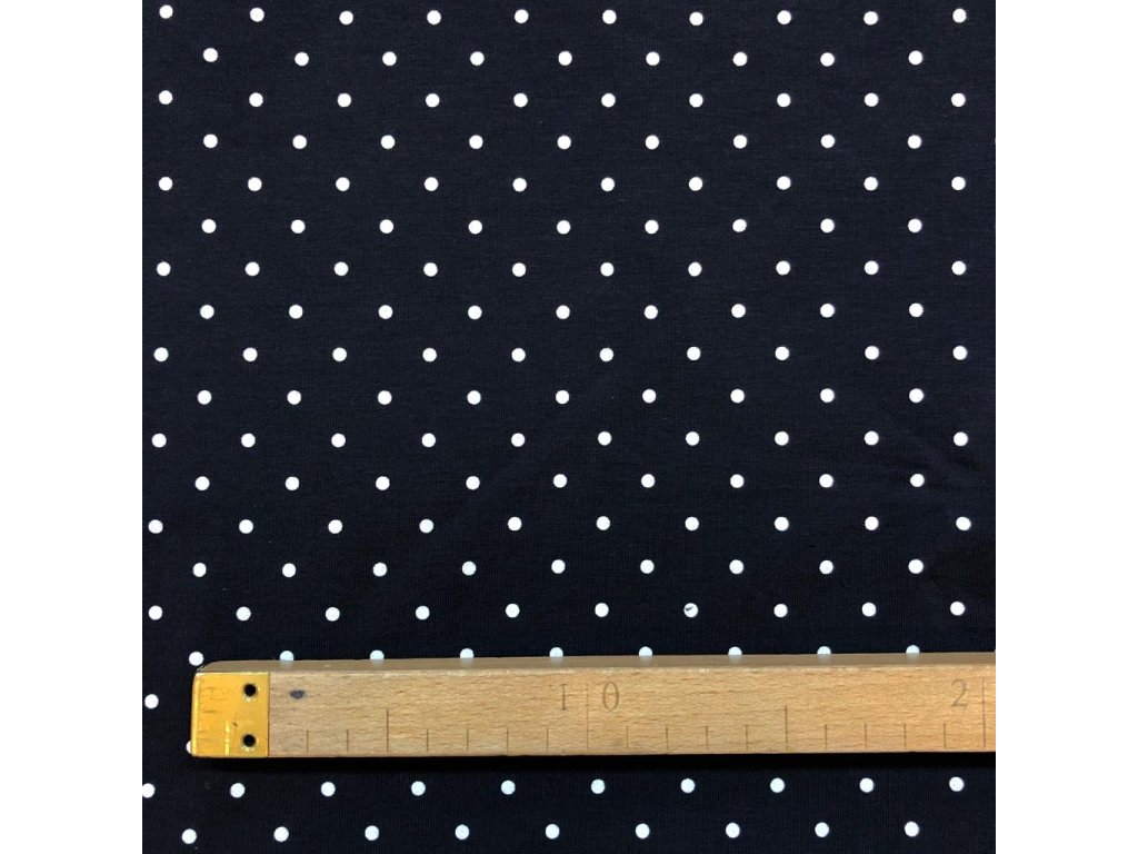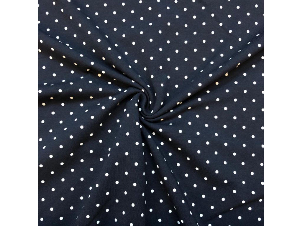 Teplákovina bílé puntíčky na tmavě modré