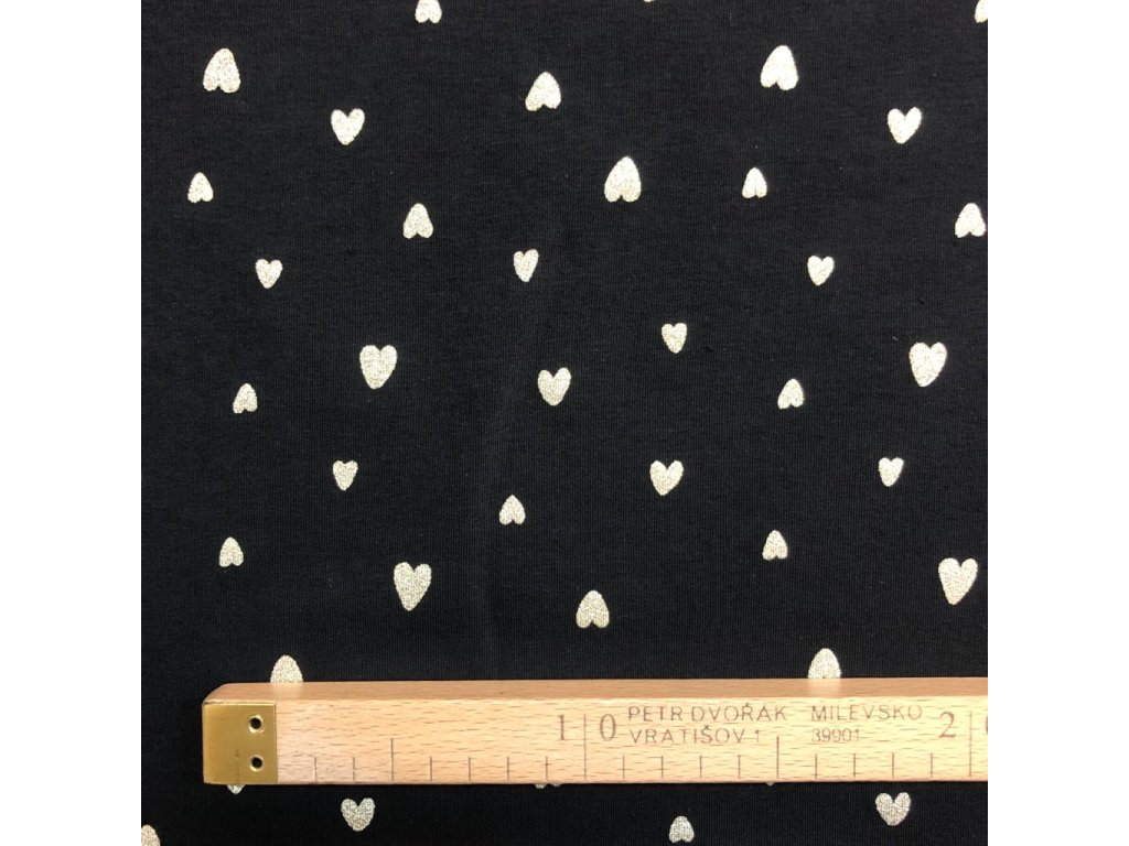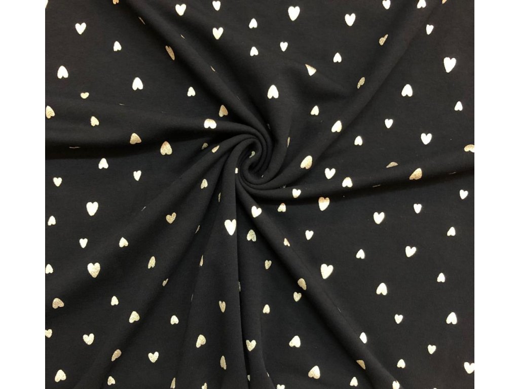 Teplákovina srdíčka zlatá na černé