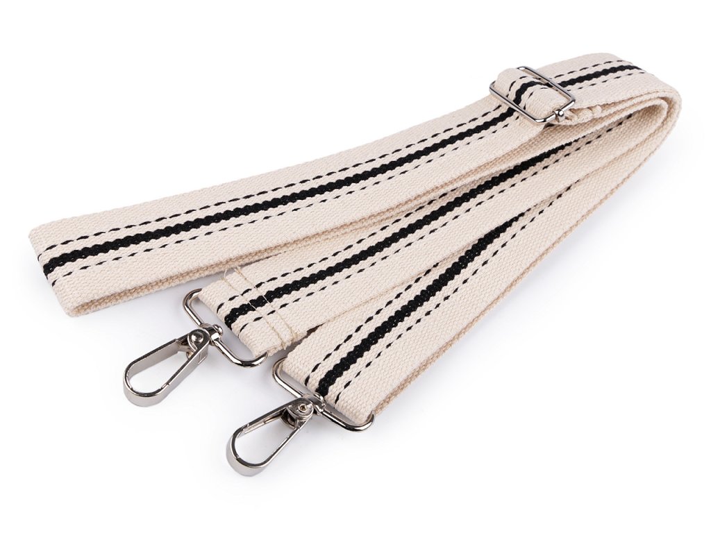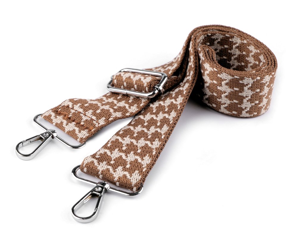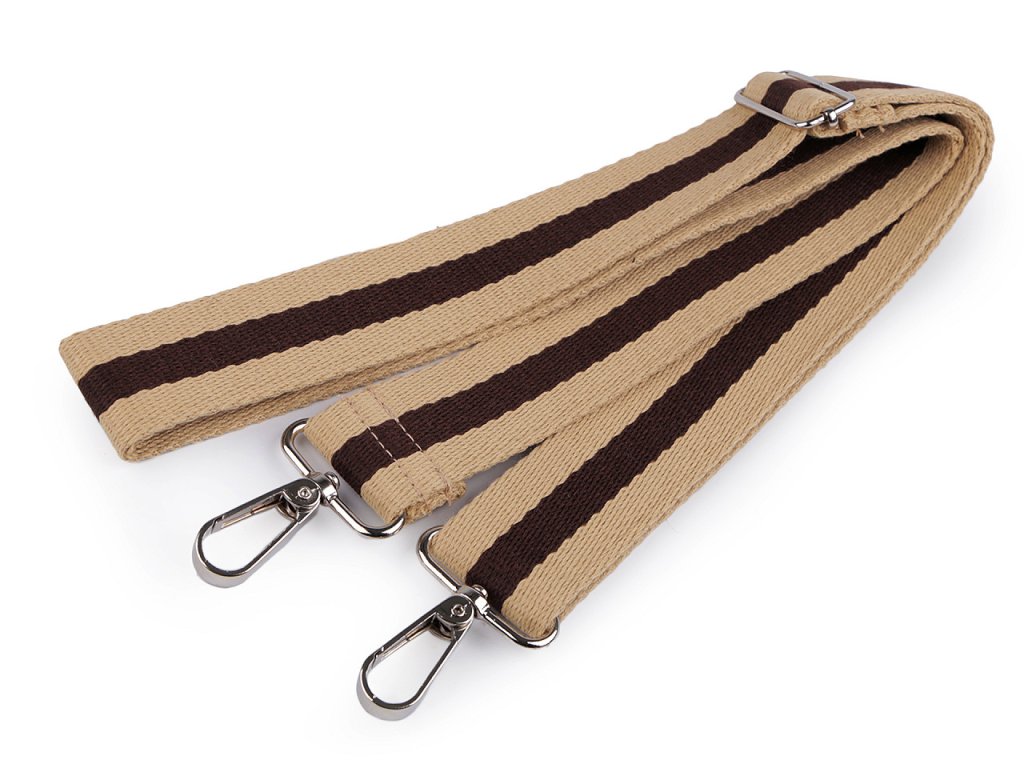 Textilní popruh má z každé strany kovovou karabinu, takže ho ke kabelce či tašce lehce připnete. Délku můžete regulovat.