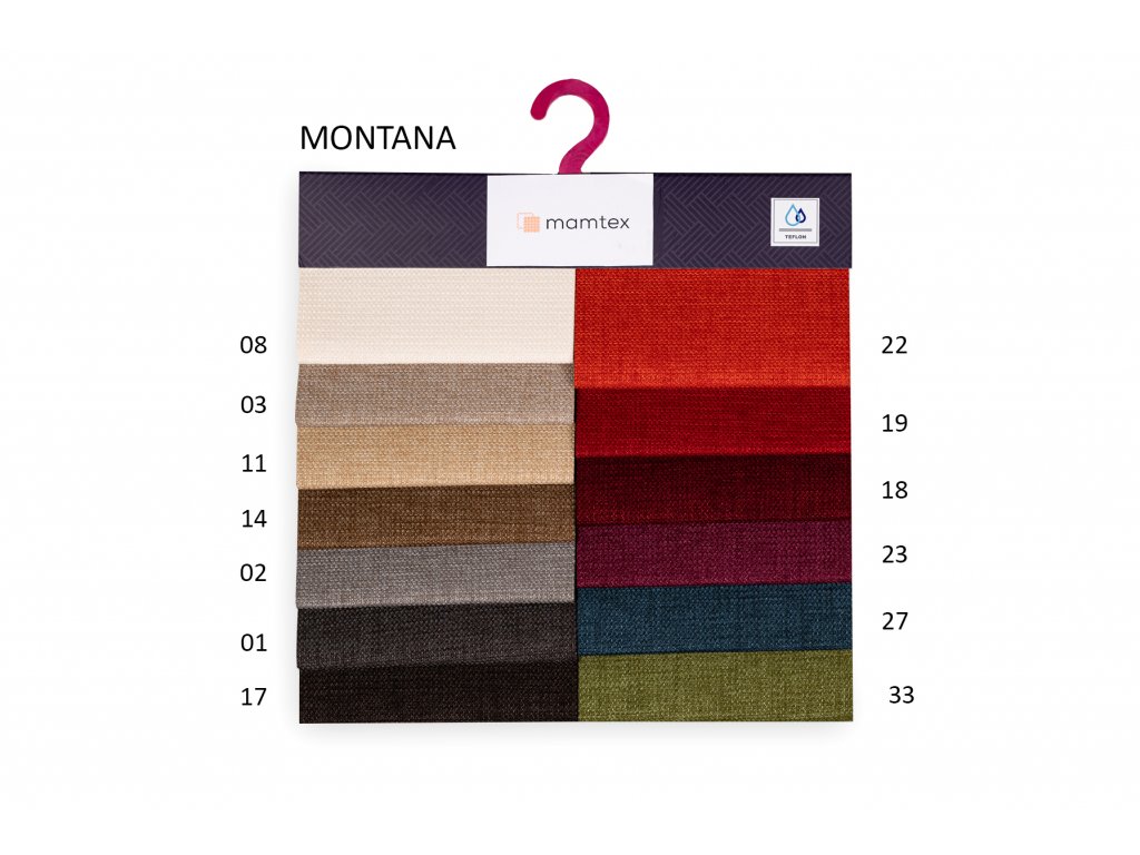 MONTANA je tkaná potahová látka vhodná pro bytové i veřejné prostory. Disponuje také úpravou TEFLON pro snadné čištění vodou.