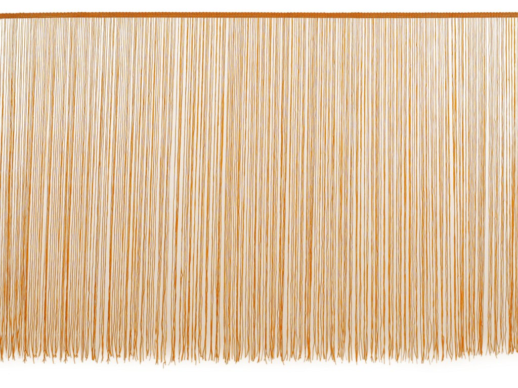 Ozdobné extra dlouhé třásně jsou několikrát prošité fixační nití, aby se nezamotaly. Po našití nit odstraňte. Díky délce třásně využijete na šití tanečních kostýmů, šatů, sukní nebo závěsů.