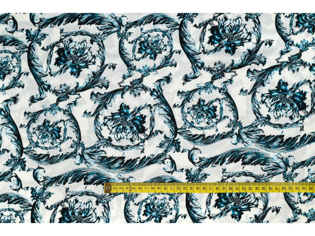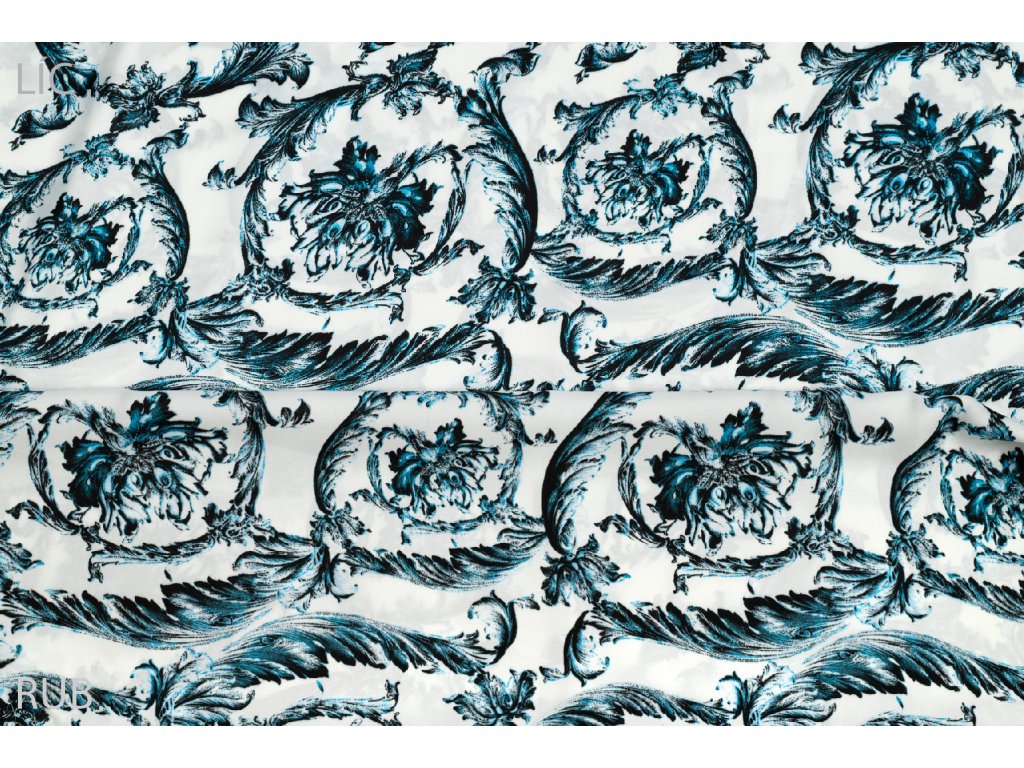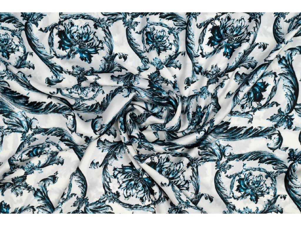 Umělé hedvábí / Silky modré ornamenty na smetanové