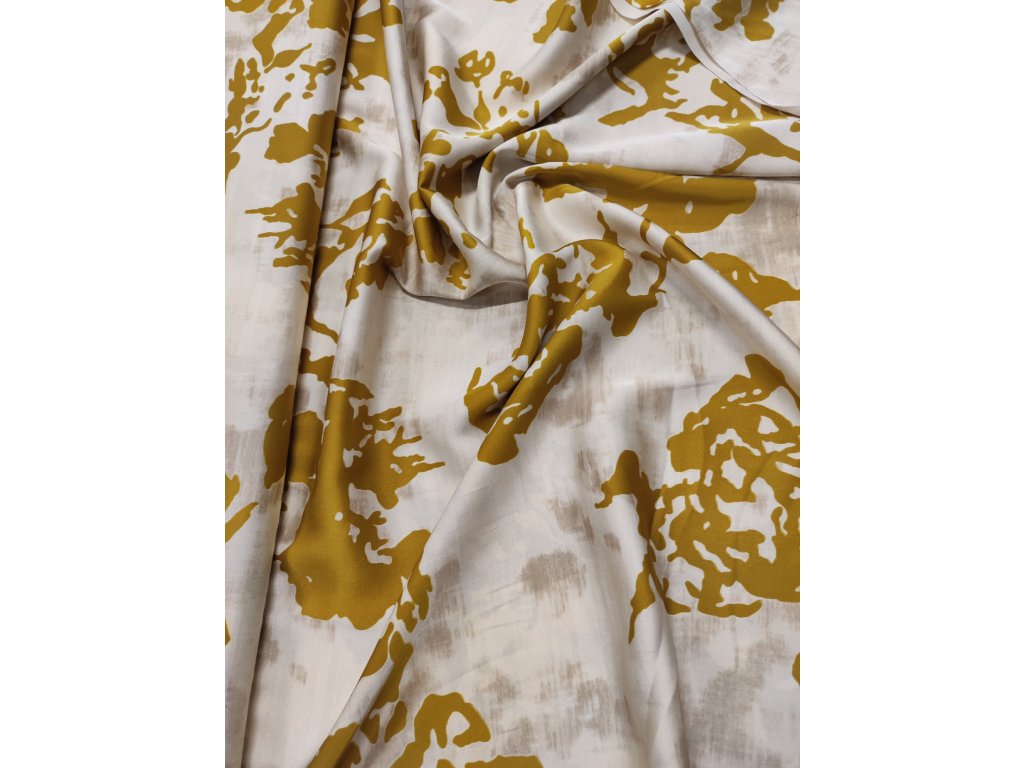 Umelé hodvábie Silky – horčicová abstrakcia na smotanovom podklade