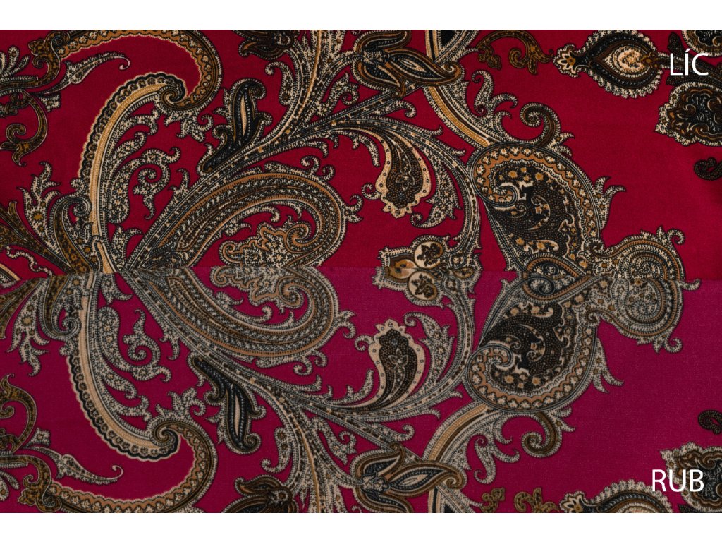 Umělé hedvábí / Silky kašmírový vzor na bordó
