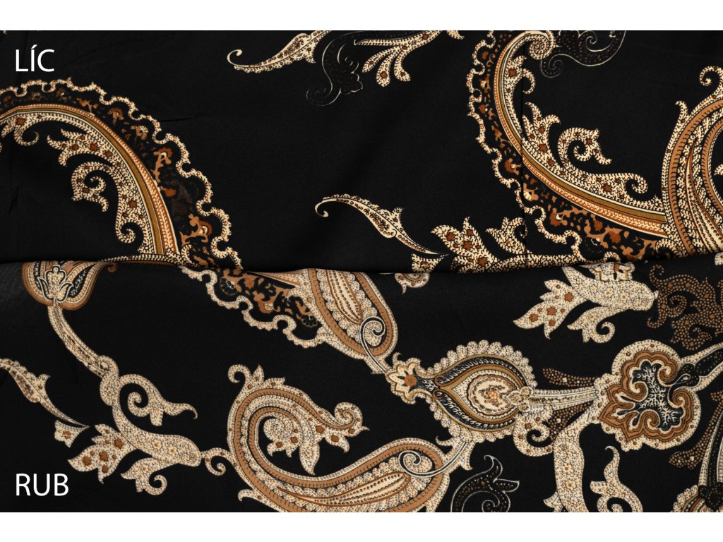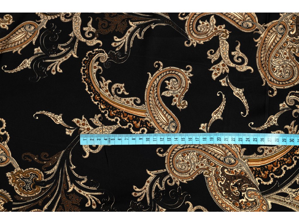 Umělé hedvábí / Silky kašmírový vzor na černé
