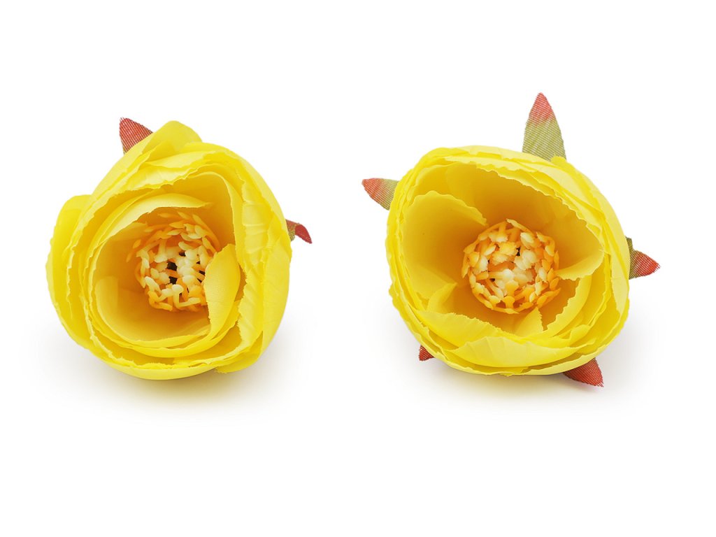 Květy pryskyřníku výborně doplní vaše květinová aranžmá, věnce nebo ikebany. Jsou detailně propracované, uvnitř květu mají drobné pestíky. S květy nevšedně ozdobíte také čelenky, sponky do vlasů či fascinátory. Ze spodní strany mají květy krátký plastový stonek o délce 1 cm, do kterého lze zasunout drát o maximálním průměru 2 mm.