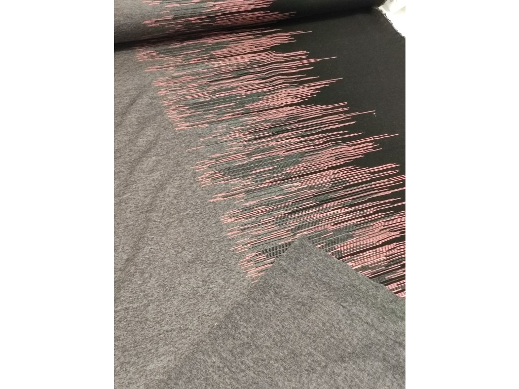 Úplet zmesový obojstranná bordúra svetlo cyklámenových čiar na šedej