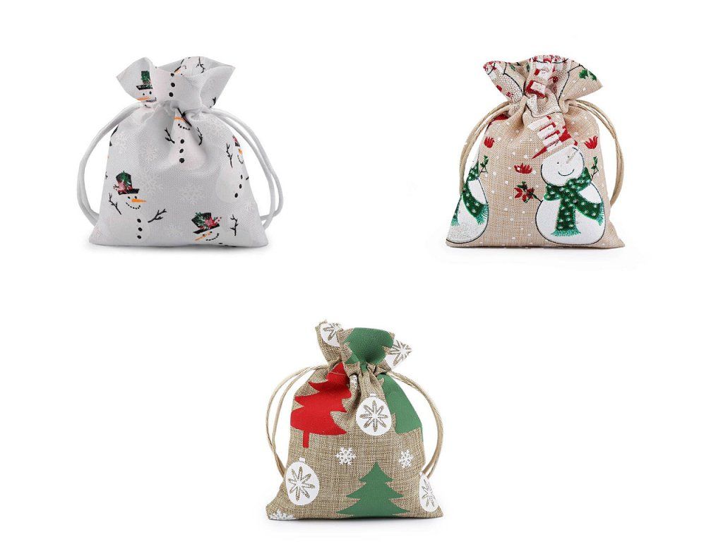 Dárkový pytlík s vánočním potiskem je vynikající na rychlé a efektní zabalení malých dárků. Materiál pytlíku svým zpracováním připomíná jutu. Uzavírá se pomocí stahovacích saténových šňůrek.