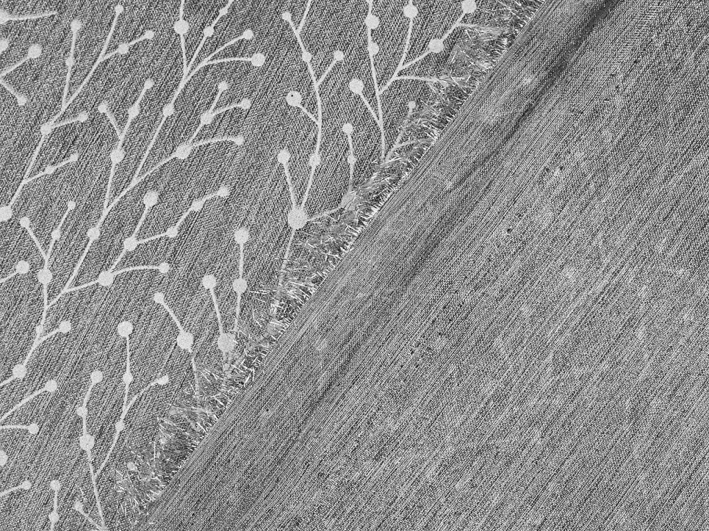 Imitaci juty zdobí potisk větviček. Díky glitrům a lurexu má slavnostní třpyt. Je lehká a pevná, využijete ji na šití pytlíčků, ubrusů, prostírání nebo běhounů.
