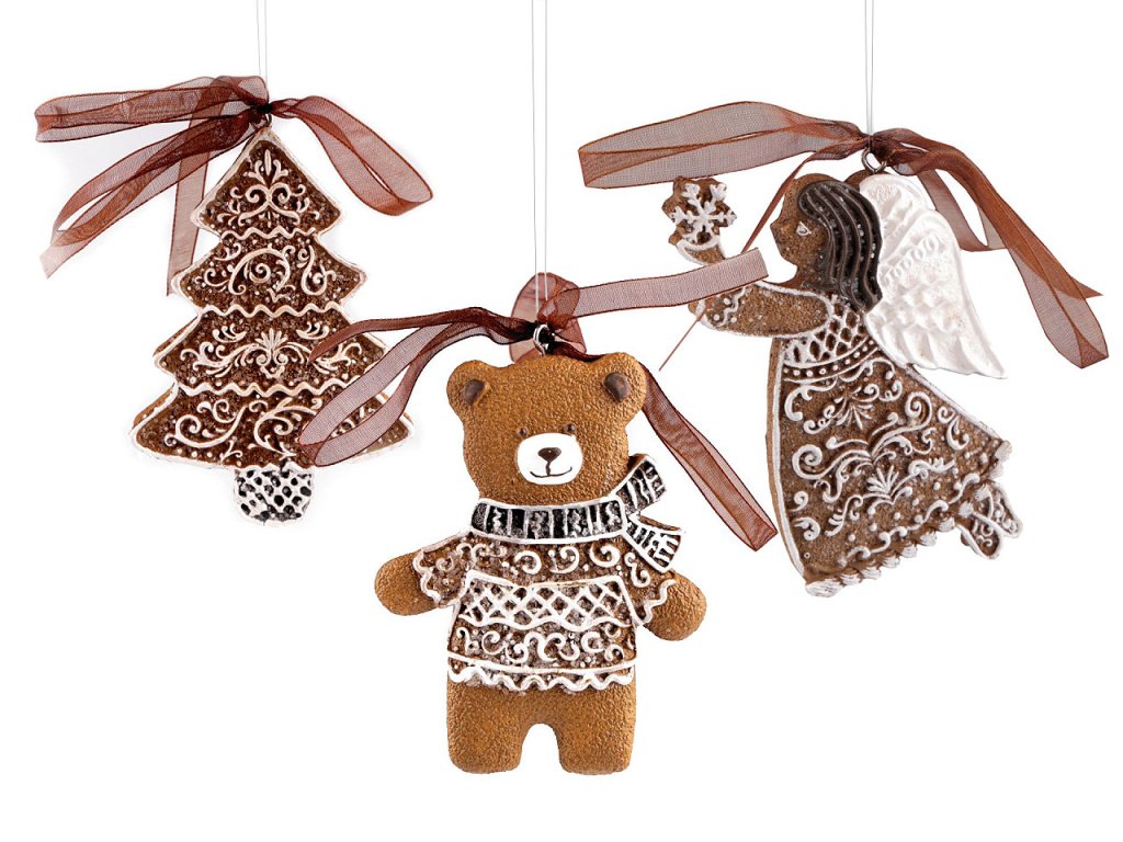 Vánoční perníčky k dekoraci vánočních stromků a věnců chaloupka, medvěd, anděl, strom
