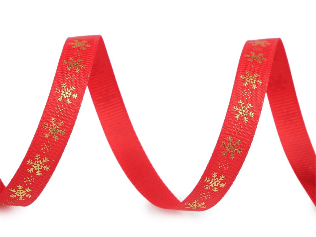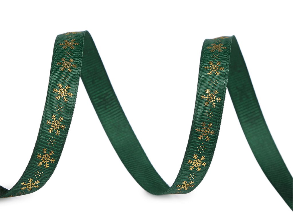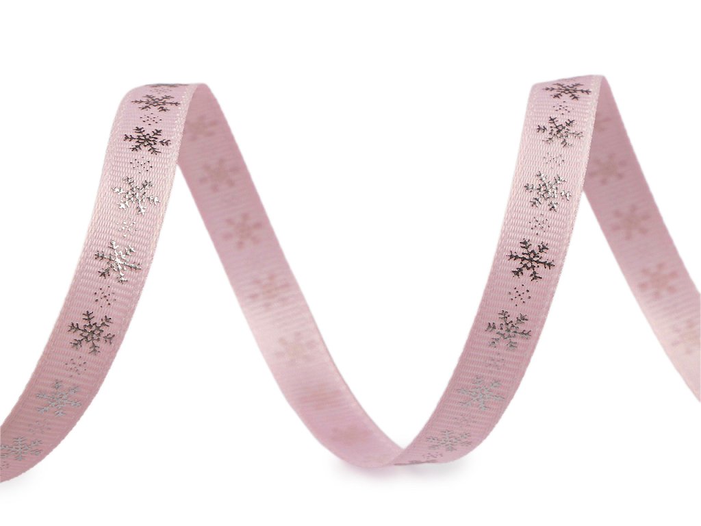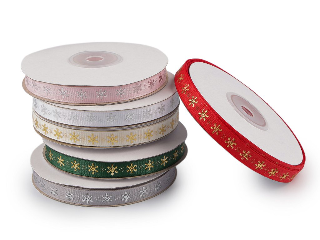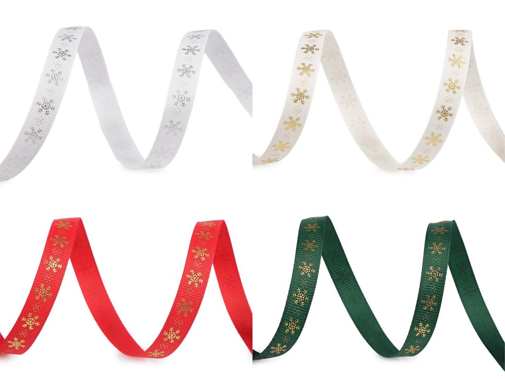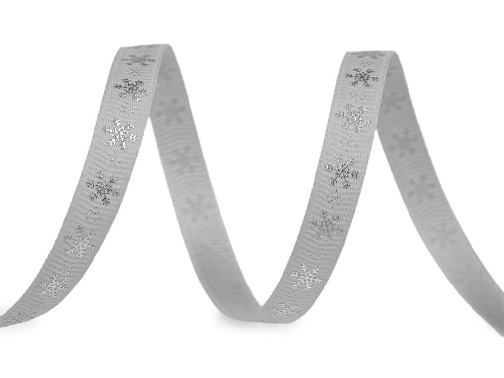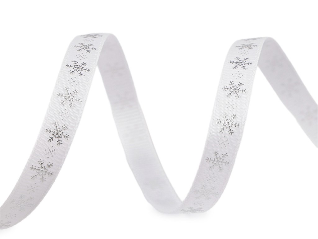 Dekorační rypsová stuha s metalickým potiskem vloček je pevná, na povrchu má typické jemné žebrování. Elegantní design vloček přináší pocit zimních svátků. Potisk je jednostranný.