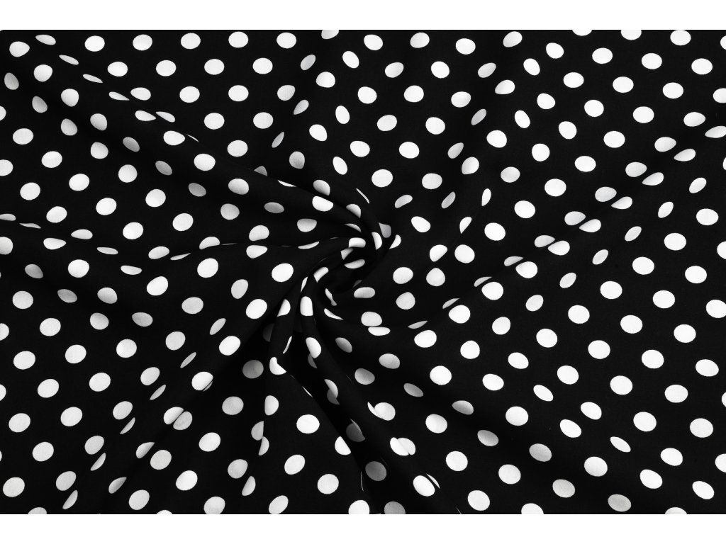 Viskózová tkanina biele bodky na čiernej