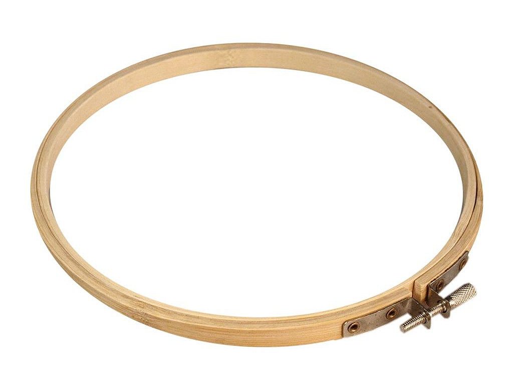 Vyšívací kruh je vyrobený zo svetlého dreva a slúži k napnutiu látky. Je vybavený kovovým sťahovacím šrobkom, pomocou ktorého prichytíte vyšívaciu predlohu.