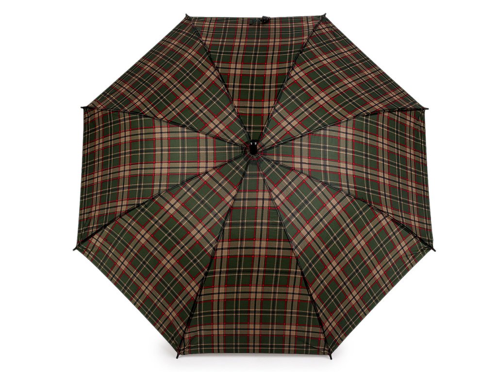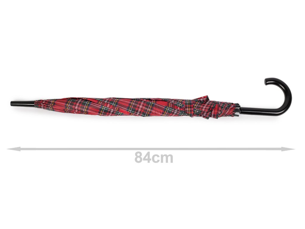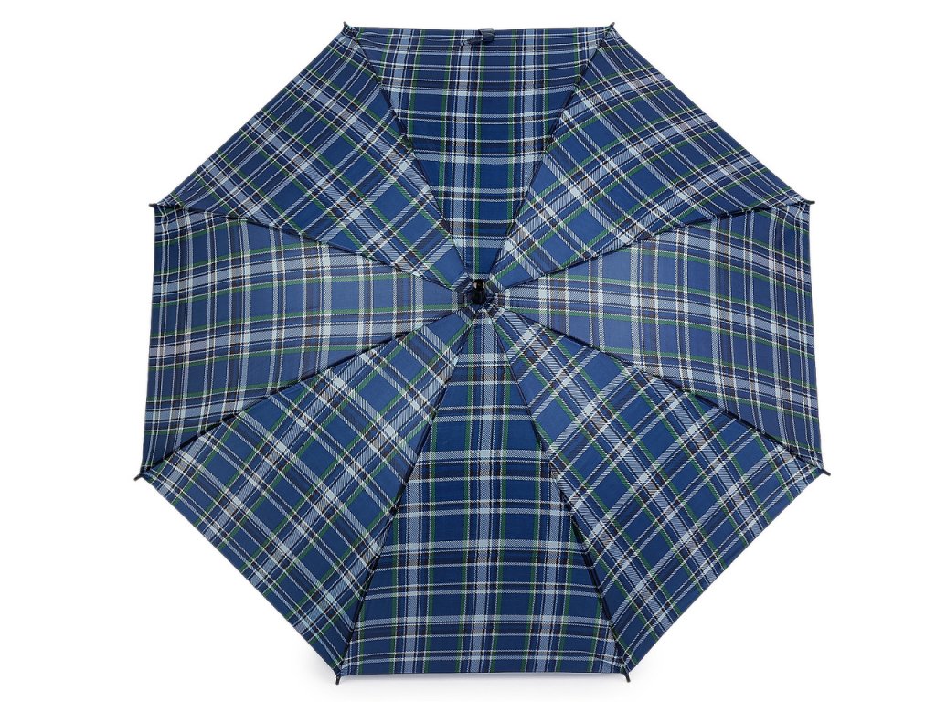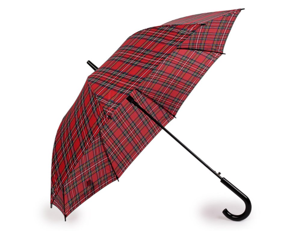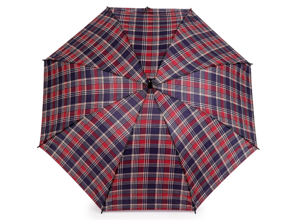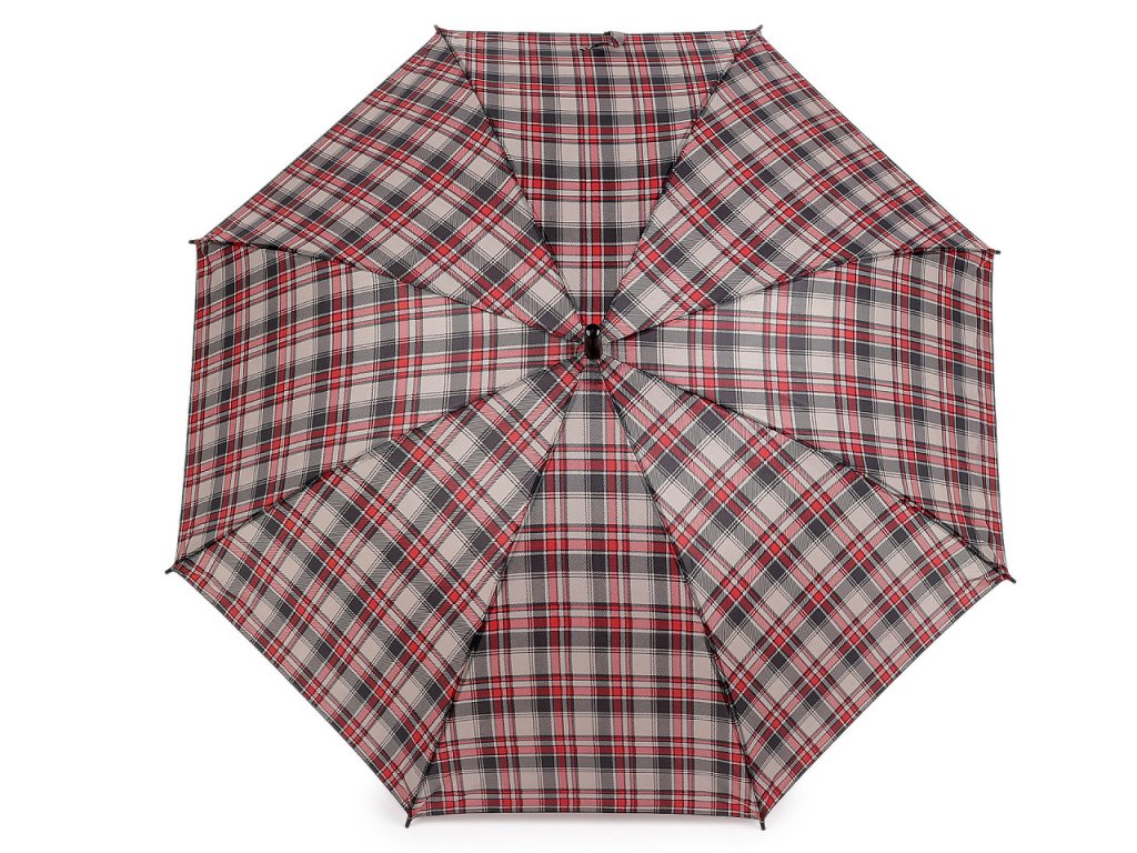 Velký deštník s károvaným potahem je ideálním doplňkem pro každého, kdo hledá kombinaci funkčnosti a stylu. Je vystřelovací, konstrukci má z kovového drátu a pružných lamel, které tvoří osm polí. Díky nim je velice pevný, neohne se ani za největšího nečasu. UV filtr vás ochrání před slunečním zářením. Klasická tyč je zakončená pevnou rukojetí.