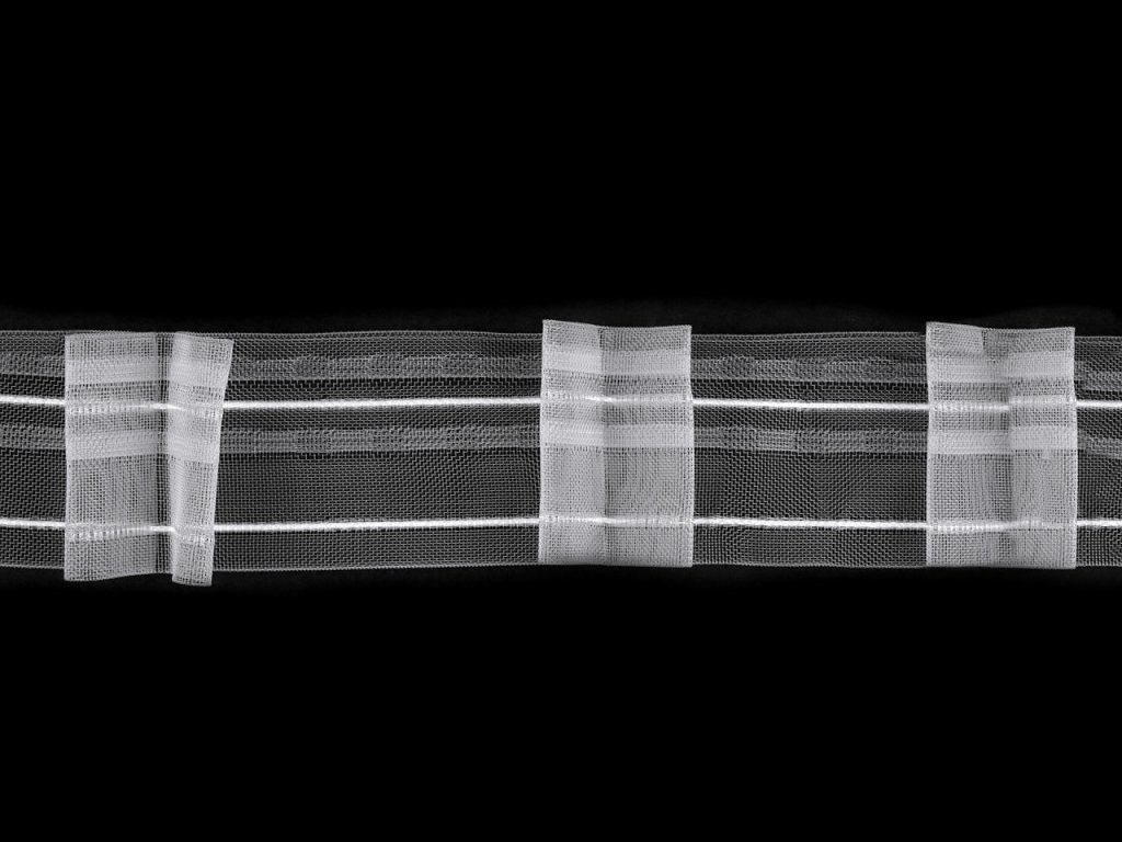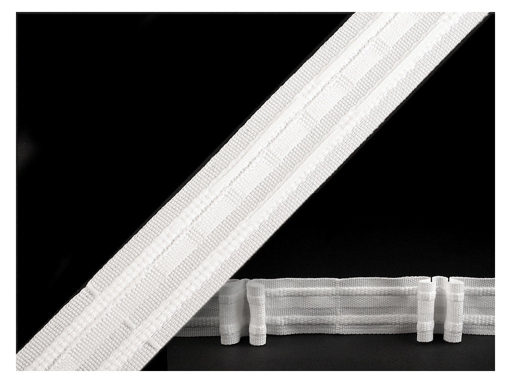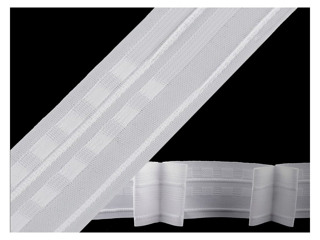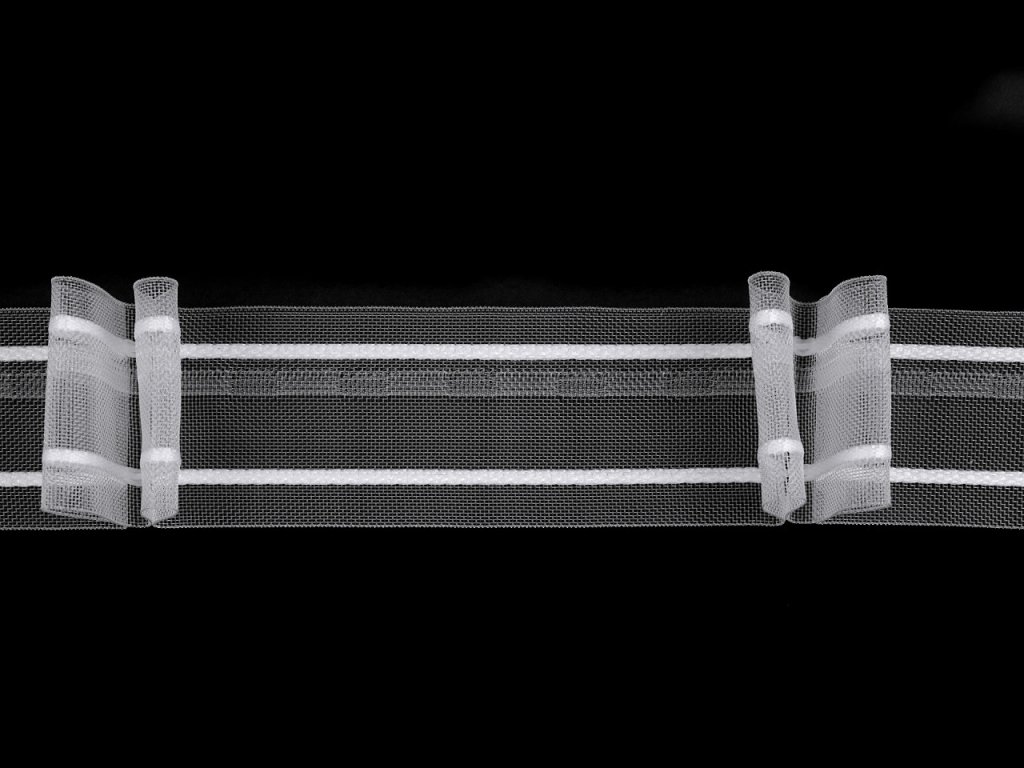 Záclonovka vám zaručí rovnomerné nariasenie záclon a závesov. Na zadnej strane má 2 šnúrky, ktoré stačí zatiahnuť a vzniknú tak pútka na zavesenie. Odporúčané riasenie je 1:2 - na 1 m treba použiť 2 m riasiacej stuhy.