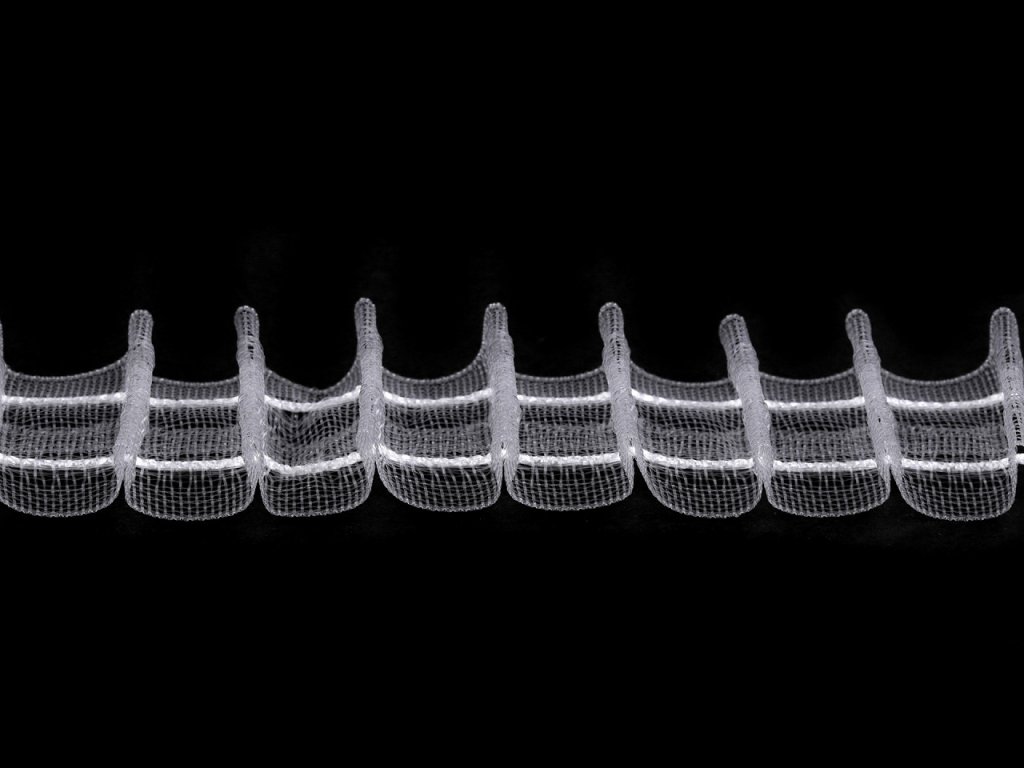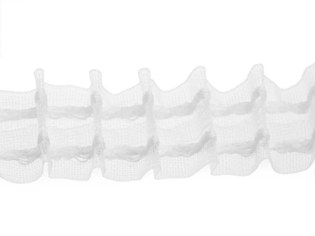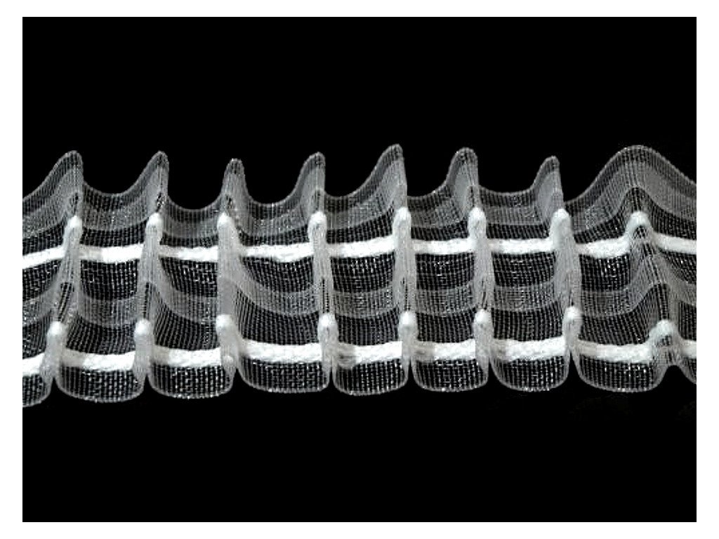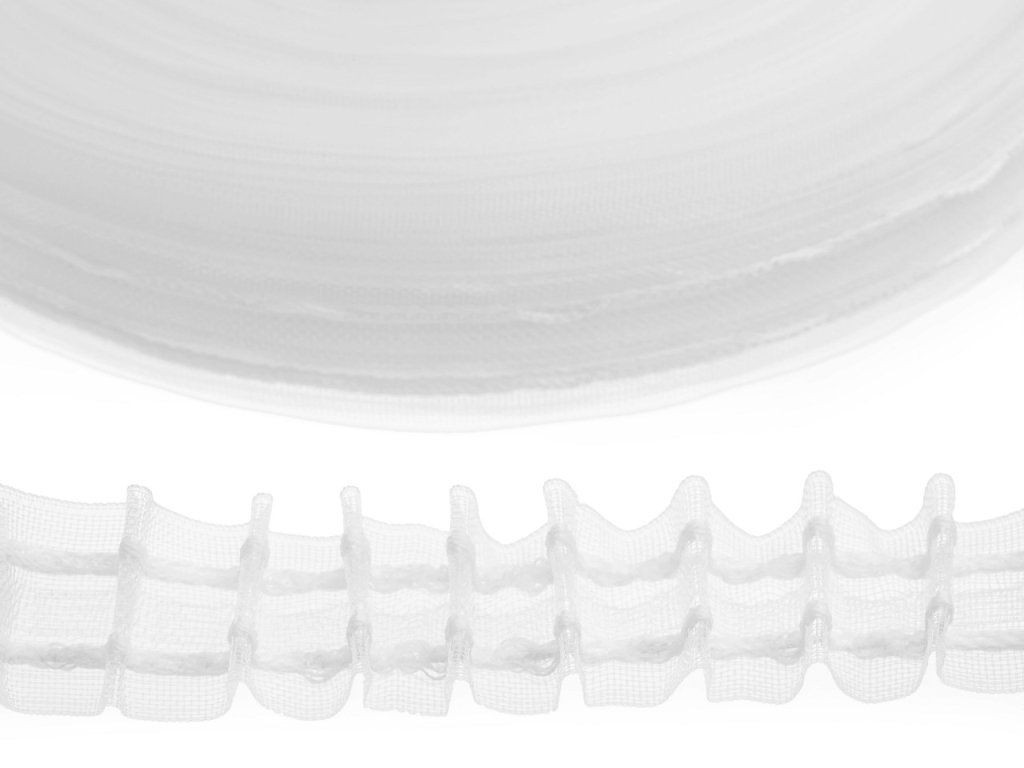 Záclonovka vám pomôže pravidelne nariasiť záclony aj závesy. Zo zadnej strany sú 2 šnúrky, za ktoré stačí zatiahnuť a vzniknú tak pútka na zavesenie. Odporúčané riasenie je 1:2 - na 1 m treba použiť 2 m riasiacej stuhy.