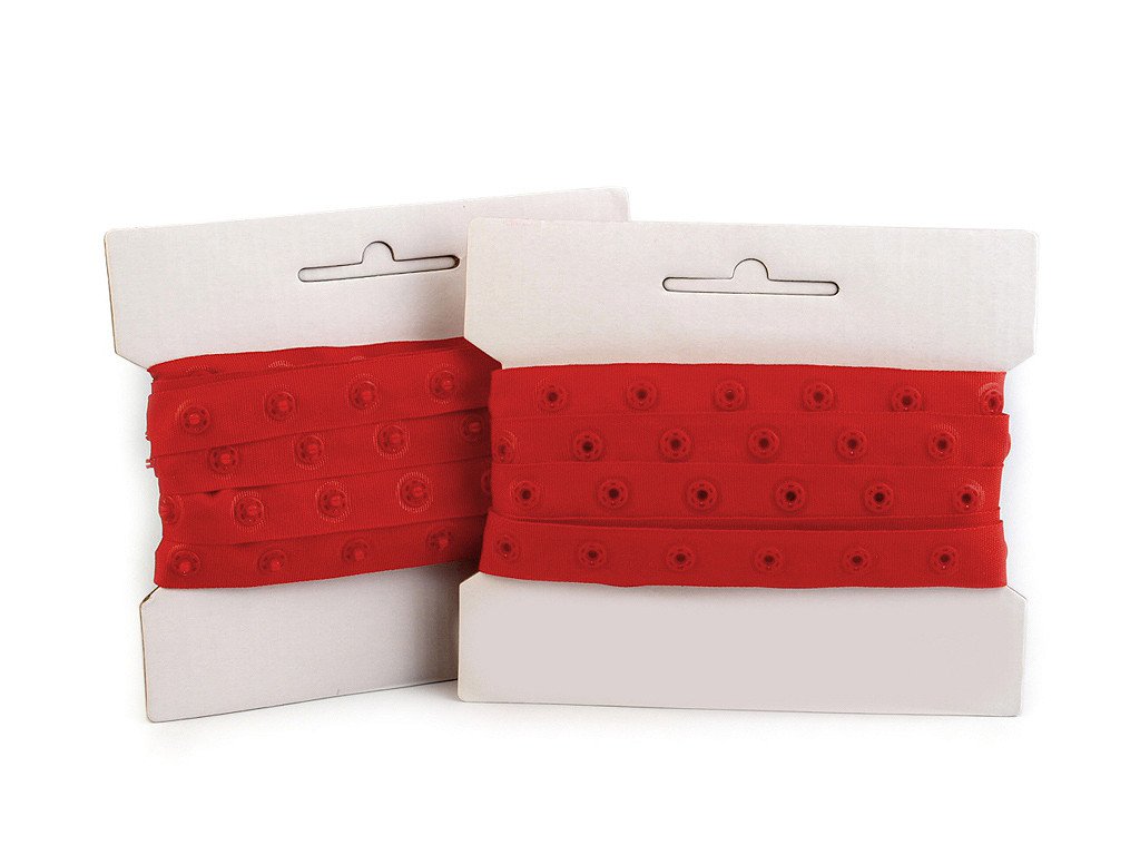 Užitočný pomocník v textilnej galantérii. Na kvalitnom popruhu sú pripevnené plastové cvoky . Tento typ stláčacích gombíkov na textile je vhodný pre skryté zapínanie na odevoch. Balenie obsahuje dve cievky, obsahujúce kus a protikus. Rozteč medzi cvokmi pri č. 2, 4, 5, 7, 10, 11 , 15, 16, 17, 18, 19 je 25 mm. Rozteč medzi cvočkami pri č. 6, 8 je 18 mm. Priemer cvoku je 8 mm.