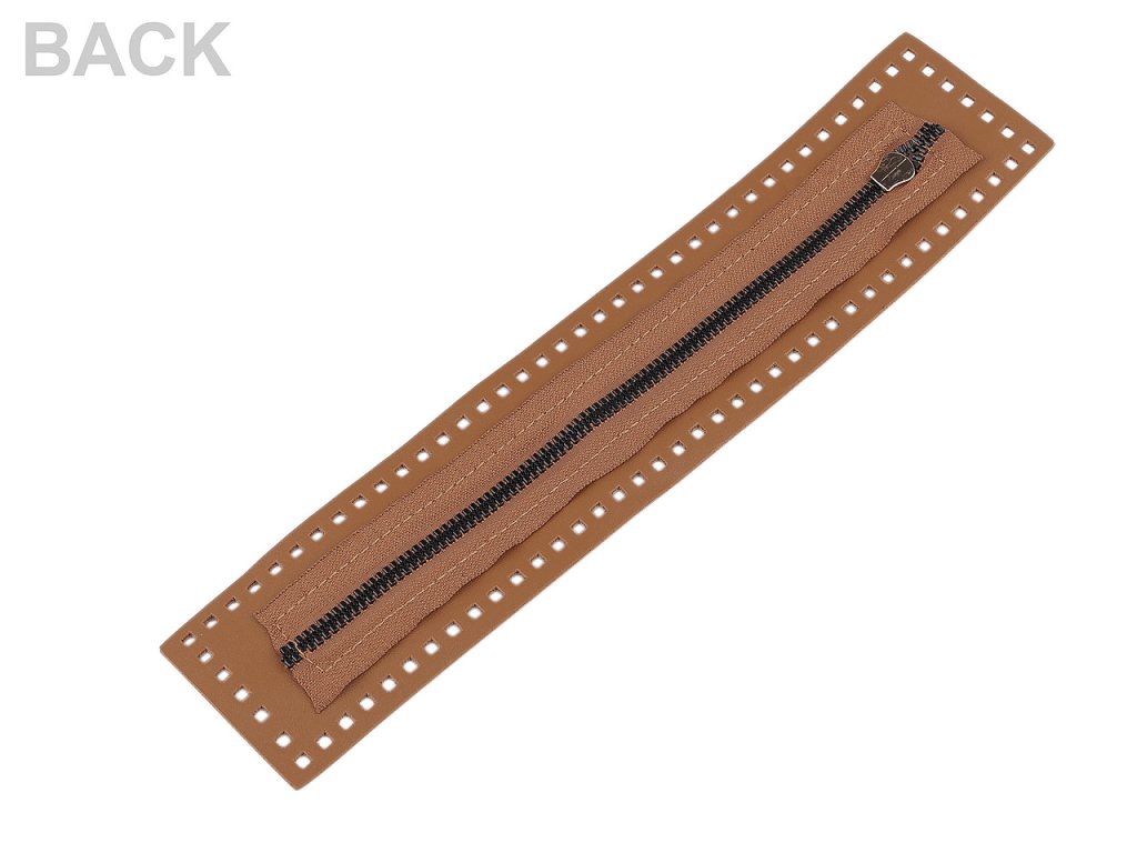 Zip vsadený do podkladu z eko kože využijete na kabelky, tašky, puzdrá aj batohy. Je vhodný na šité, pletené aj háčkované výrobky. Môžete ho použiť ako hlavné zapínanie alebo na vnútorné a bočné vrecká. Rozmery štvorčekov sú 3 x 3 mm. Dĺžka zipsu je 21,5 cm. Šírka zúbkov je 6 mm.
